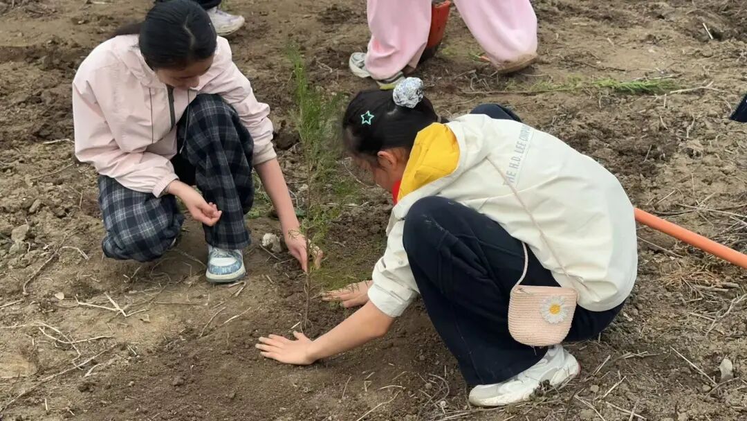 植树区里,一棵棵小树苗被小心种下