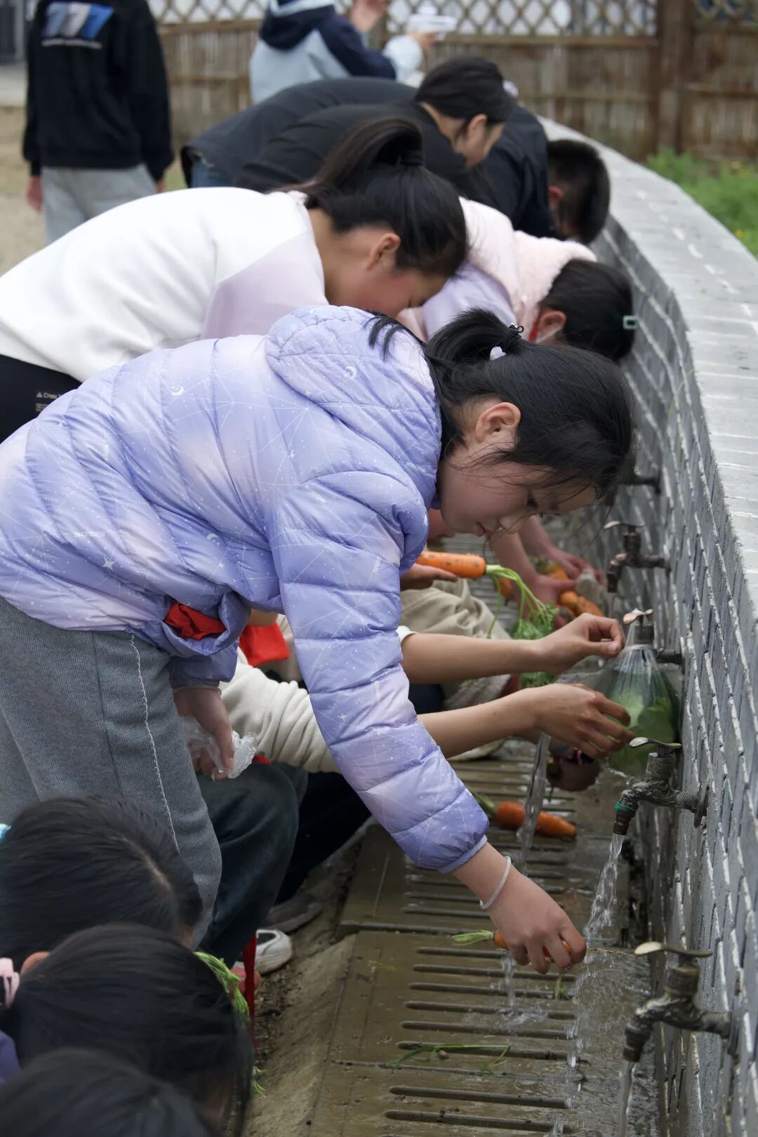 田埂上,孩子们用力拔起胖乎乎的胡萝卜