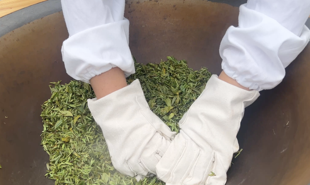 炒茶锅热气腾腾,嫩芽在掌心翻飞